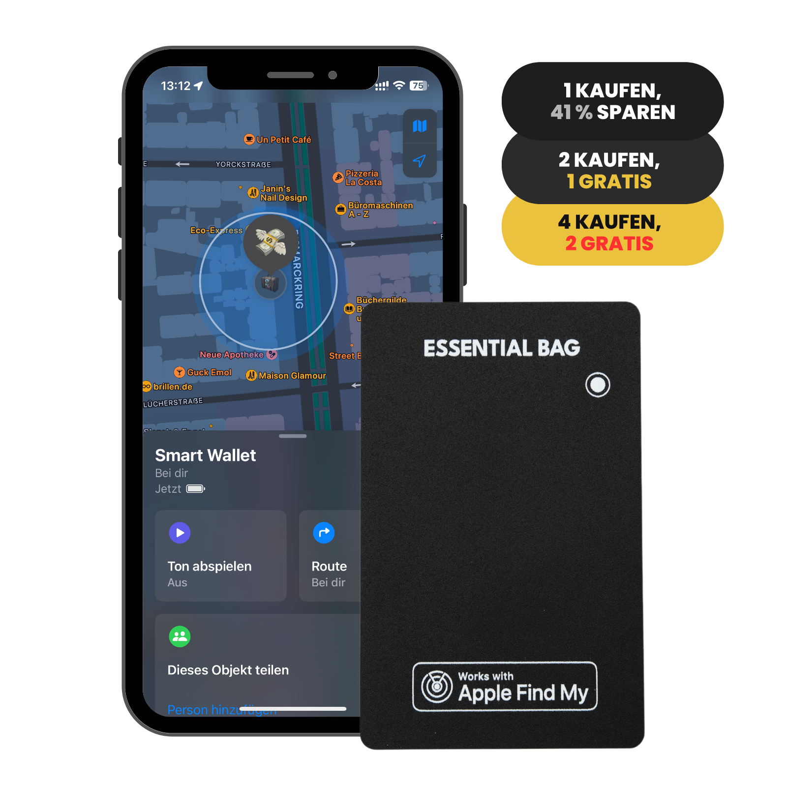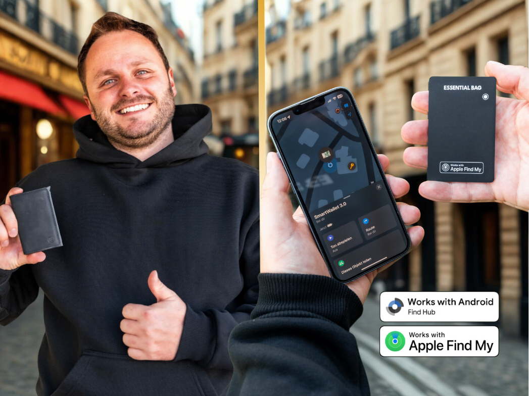 Einfach über die vorinstallierte „Wo ist?“‑App auf Apple Geräten oder die „FindHub“-App auf deinem Android-Gerät verbinden - fertig.